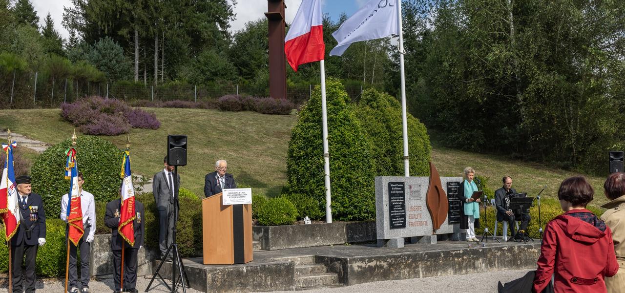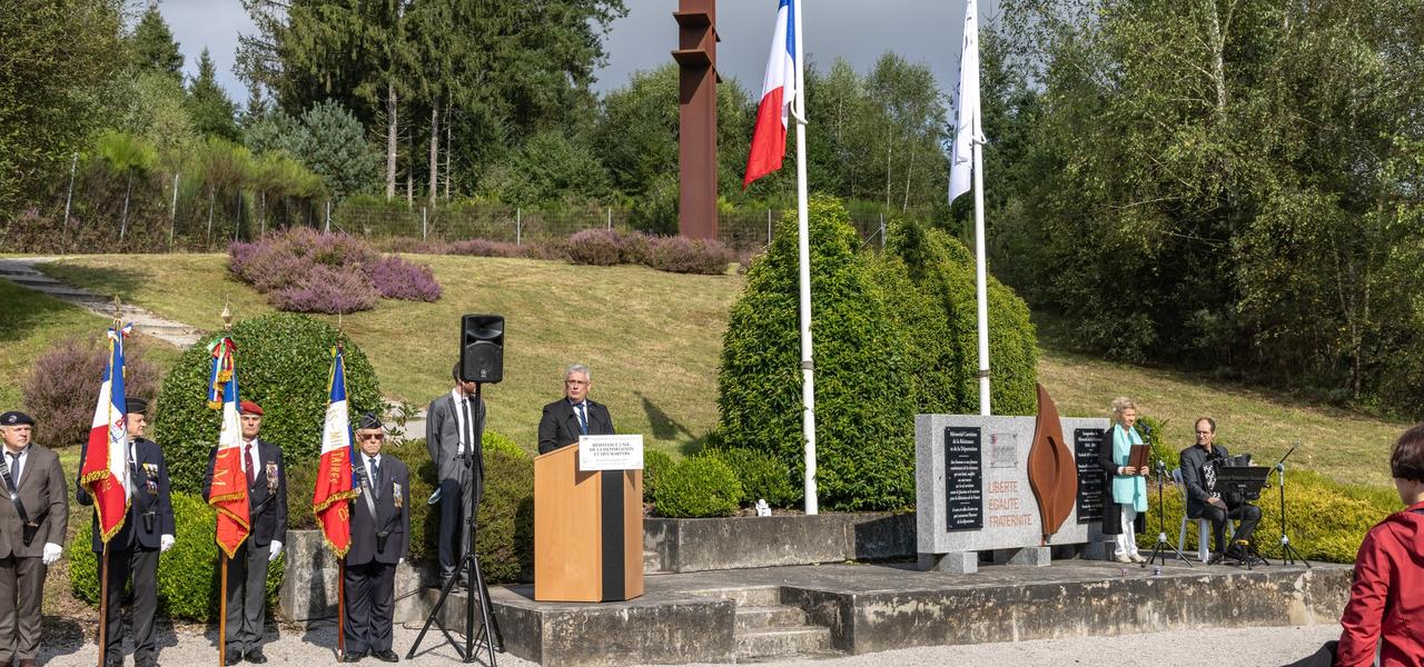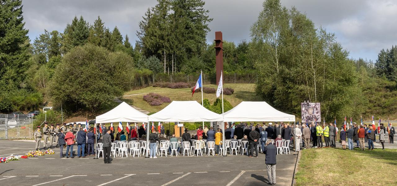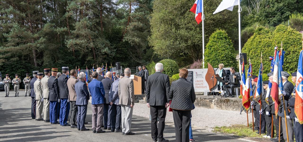 Ce mardi sur le site du Mémorial à Vitrac-sur-Montane, au pied de la Croix de Lorraine à double fût, symbole de l’union des mouvements de la Résistance française, le survol d'un Alpha Jet a ouvert la cérémonie à l'occasion du 80ème anniversaire de la Libération.