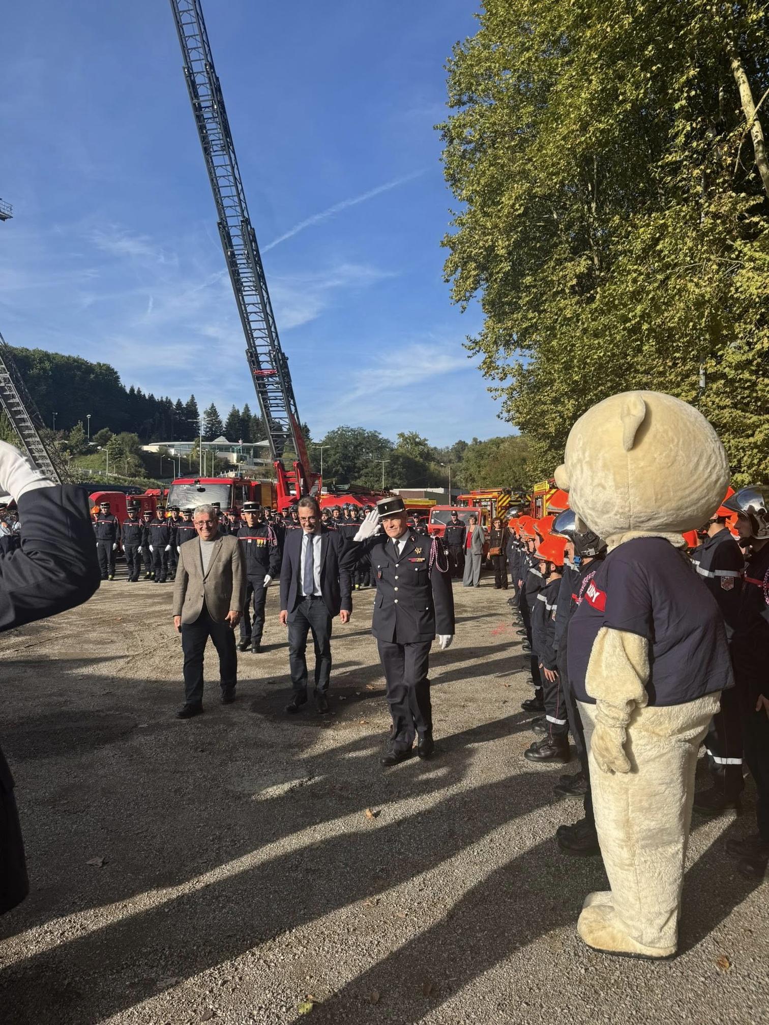 Aux côtés des sapeurs-pompiers, le Président Pascal COSTE a tenu à réaffirmer le soutien fort de la collectivité à leur engagement quotidien et à l’équilibre entre professionnels et volontaires.