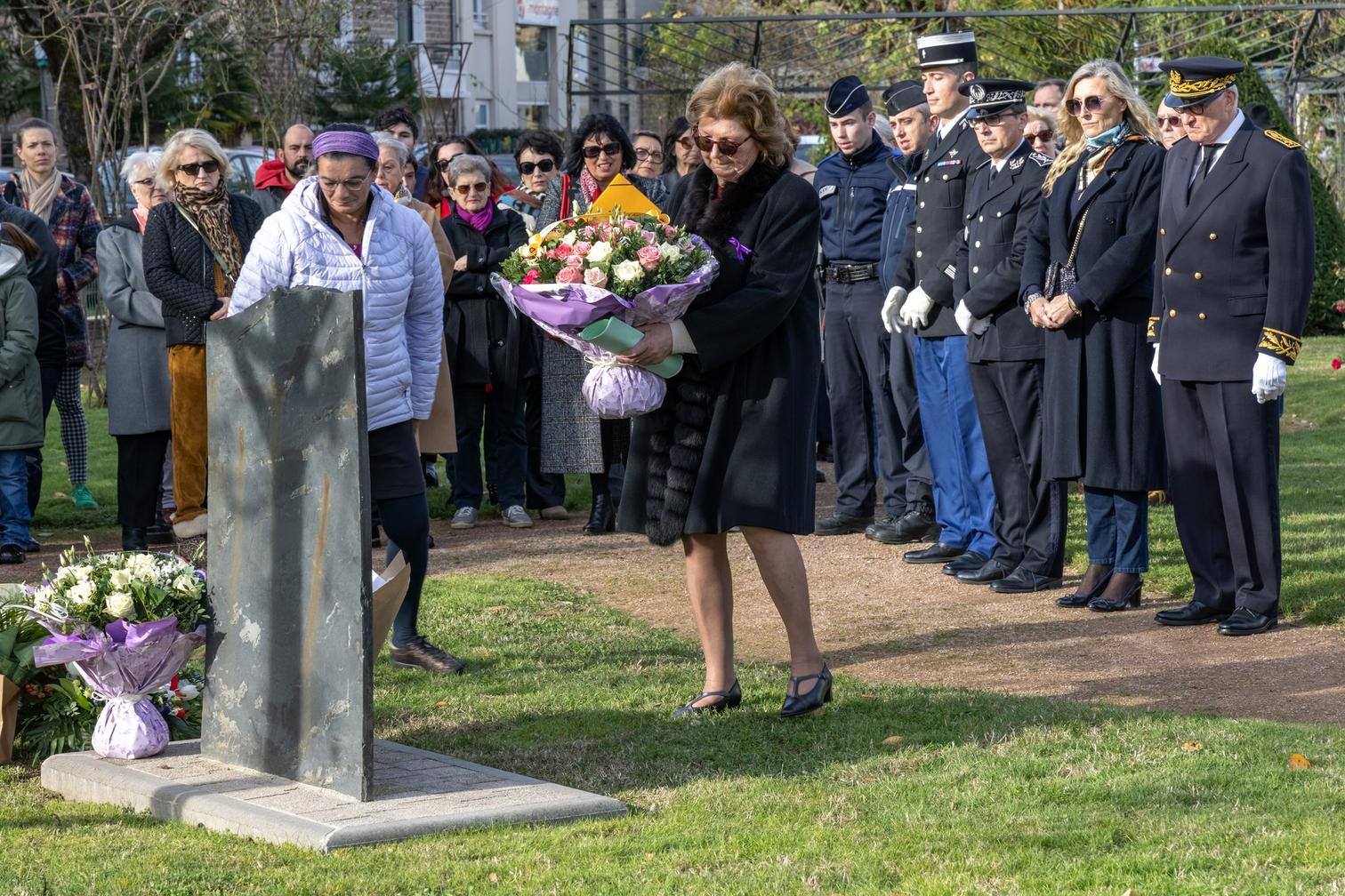 À la veille de la Journée internationale pour l'élimination de la violence à l'égard des femmes, une cérémonie a été organisée par l'association SOS Violences Conjugales, à la stèle de la Roseraie à Brive.