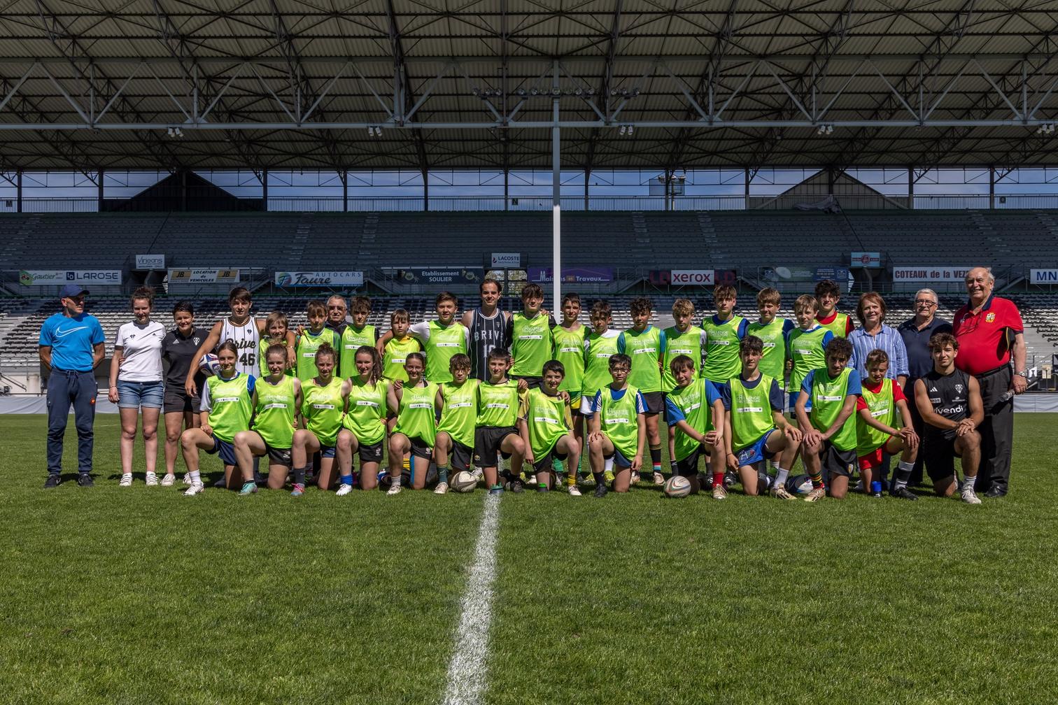 Les jeunes sportifs ont eu le loisir de rencontrer des joueurs du CA Brive Rugby : Mathis Ferté, Léo Carbonneau ainsi que Tom Raffy et Louise Berthoumeyrie tous deux parrain et marraine de cette édition 2024.