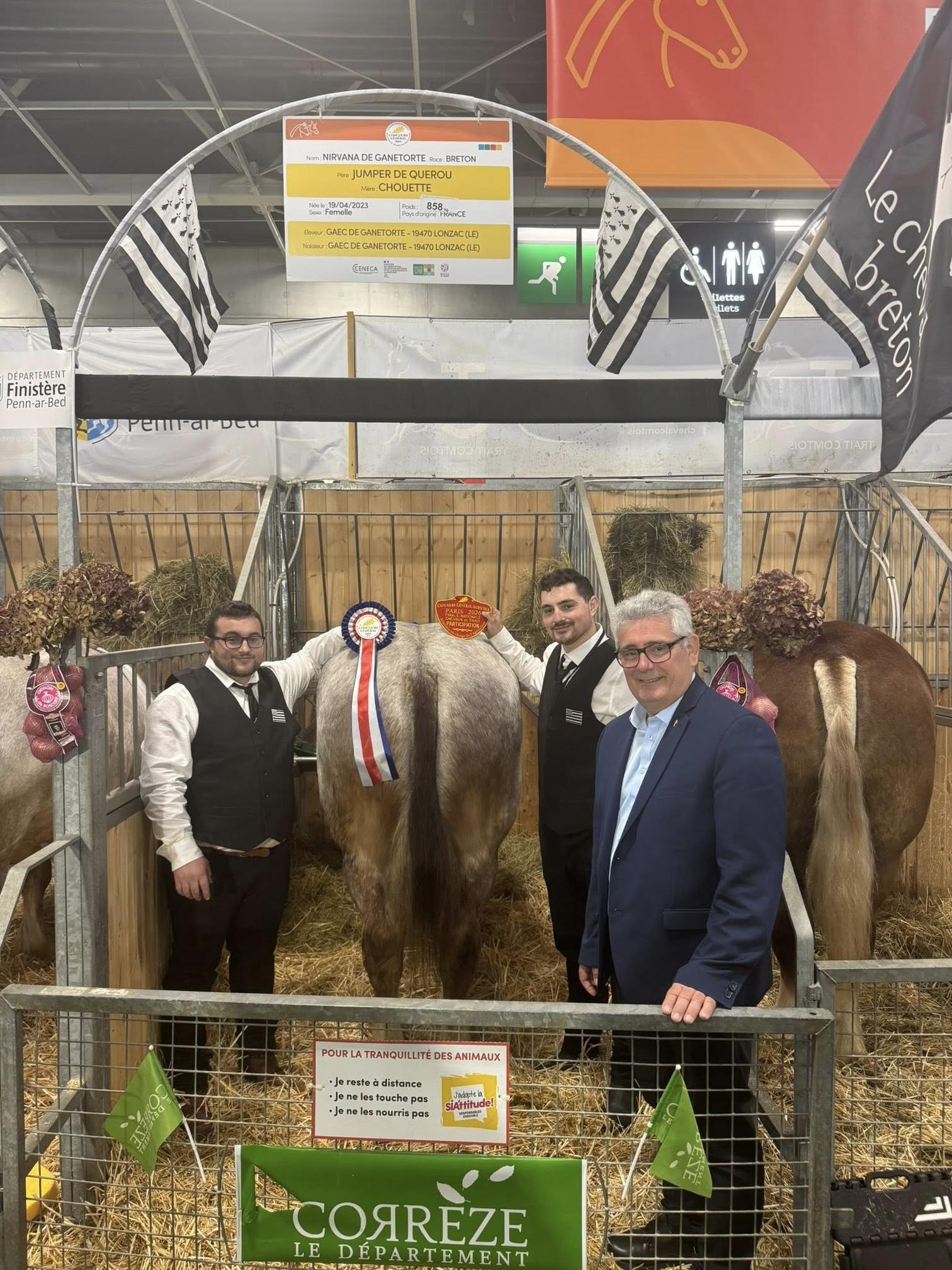 Le Président Pascal COSTE était présent pour saluer la participation de Nirvana de Ganetorte du GAEC Ganetorte aux concours de Traits Bretons qui a représenté avec fierté le savoir-faire et la qualité de l’élevage corrézien.