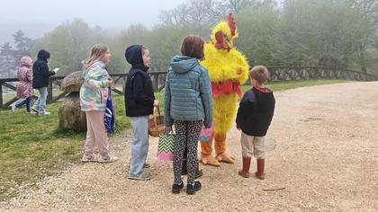 Cette année encore, la poule Super-Cocotte, a fait escale au château de Sédières pour le plus grand bonheur des petits chasseurs d'œufs !