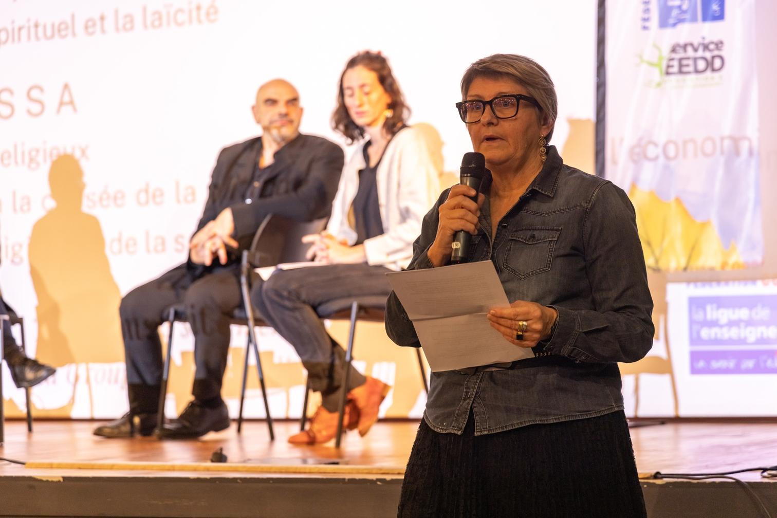 En ouverture, Hélène Rome, conseillère départementale, a rappelé combien la laïcité permet à chacune et chacun de vivre ses convictions dans le respect de l’autre.