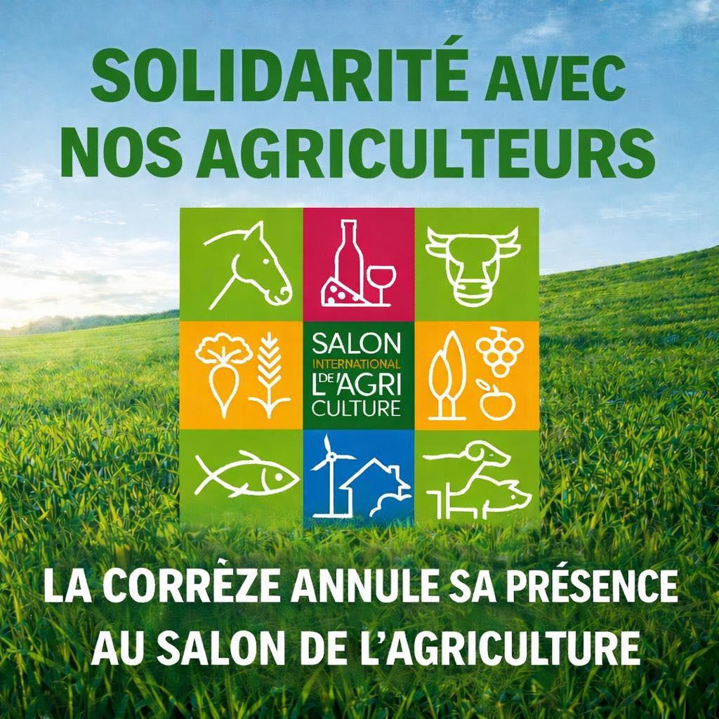 A la place, et pour démontrer la solidarité des Corréziens pour leurs paysans, nous organisons avec la Chambre d’agriculture le dimanche 22 février à 12h sous la halle Georges-Brassens et le marché couvert de Brive, un banquet corrézien ouvert à tous, afin de célébrer celles et ceux qui font vivre notre agriculture et nos villages autour de bons produits locaux.