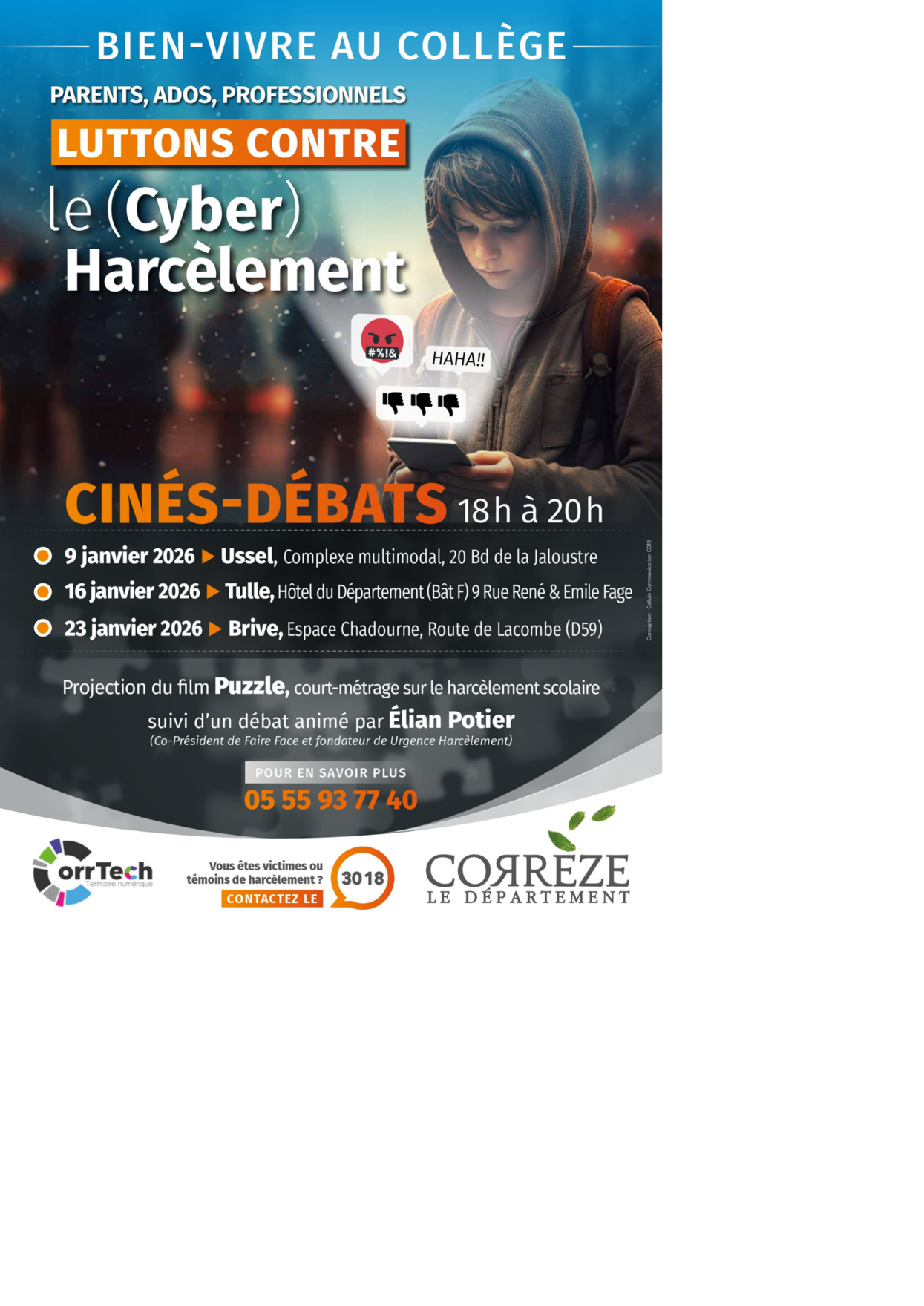 Pour rappel, devant l’ampleur de ces phénomènes, qui touchent chaque année quelque 700 000 jeunes en France, le Conseil départemental de la Corrèze est l’une des premières collectivités à avoir déployé, dès 2022, un plan global et volontariste qui s'adresse à un public élargi : élèves, parents, professionnels de la communauté éducative, ainsi que les intervenants auprès des enfants.