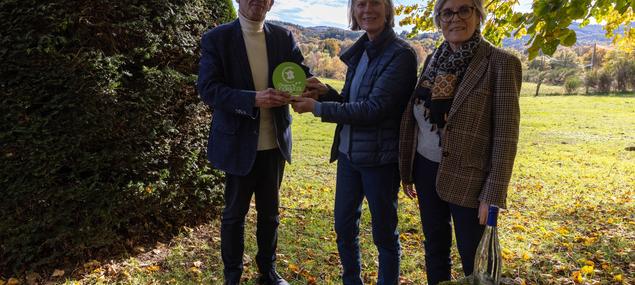 Ce mardi 3 novembre, à Treignac, M. Jean SAINTE-LAUDY, Dr en Pharmacie Responsable du laboratoire et de Qualité de l’entreprise « Eau de Treignac » a reçu le label Origine Corrèze en présence d’Hélène Rome, Conseillère départemental du canton et de Sylvie Savignac 1ere adjointe à la mairie de la commune.