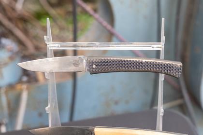 Dans son atelier, chaque pièce est conçue avec rigueur et minutie, selon un savoir-faire traditionnel : du façonnage de la lame à l’assemblage du manche, tout est fait à la main, avec une attention particulière portée aux détails et à la qualité des matériaux.
