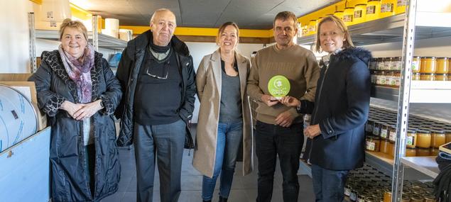 A Chamboulive, Éric Lacroix a reçu le label Origine Corrèze, en présence de Hélène Rome, Vice-Présidente du conseil départemental déléguée à l’agriculture, Jean-Jacques Lauga, conseiller départementale du canton, Betty Dessine, la Maire de Chamboulive, et Agnès Bertrand-Lafeuille représentante de la Chambre d'agriculture de la Corrèze.