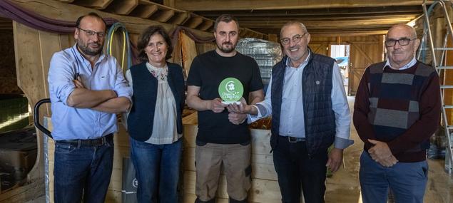 Ce vendredi 17 octobre à Vigeois, l'entreprise "Lou Père Benoît" a reçu le label Origine Corrèze en présence de Patricia BUISSON et Didier MARSALEIX, Conseillers départementaux du canton, de Jean-Paul COMBY, maire de la commune de Vigeois, et Nicolas JAUBERT, représentant la Chambre d'Agriculture.