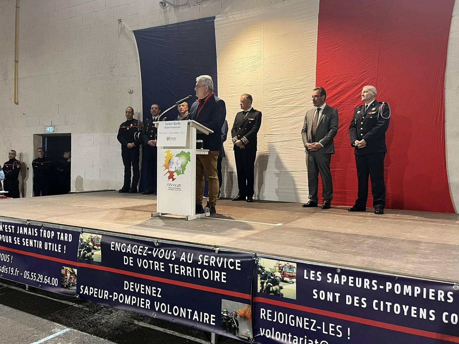 Hier soir, le président du Conseil départemental Pascal Coste et Agnes Audeguil, vice-présidente du SDIS ont assisté à la cérémonie départementale de la Sainte-Barbe des sapeurs-pompiers de la Corrèze à Tulle. L’occasion de saluer l’engagement exemplaire de nos sapeurs-pompiers, volontaires et professionnels, qui veillent chaque jour sur la sécurité des Corréziens.