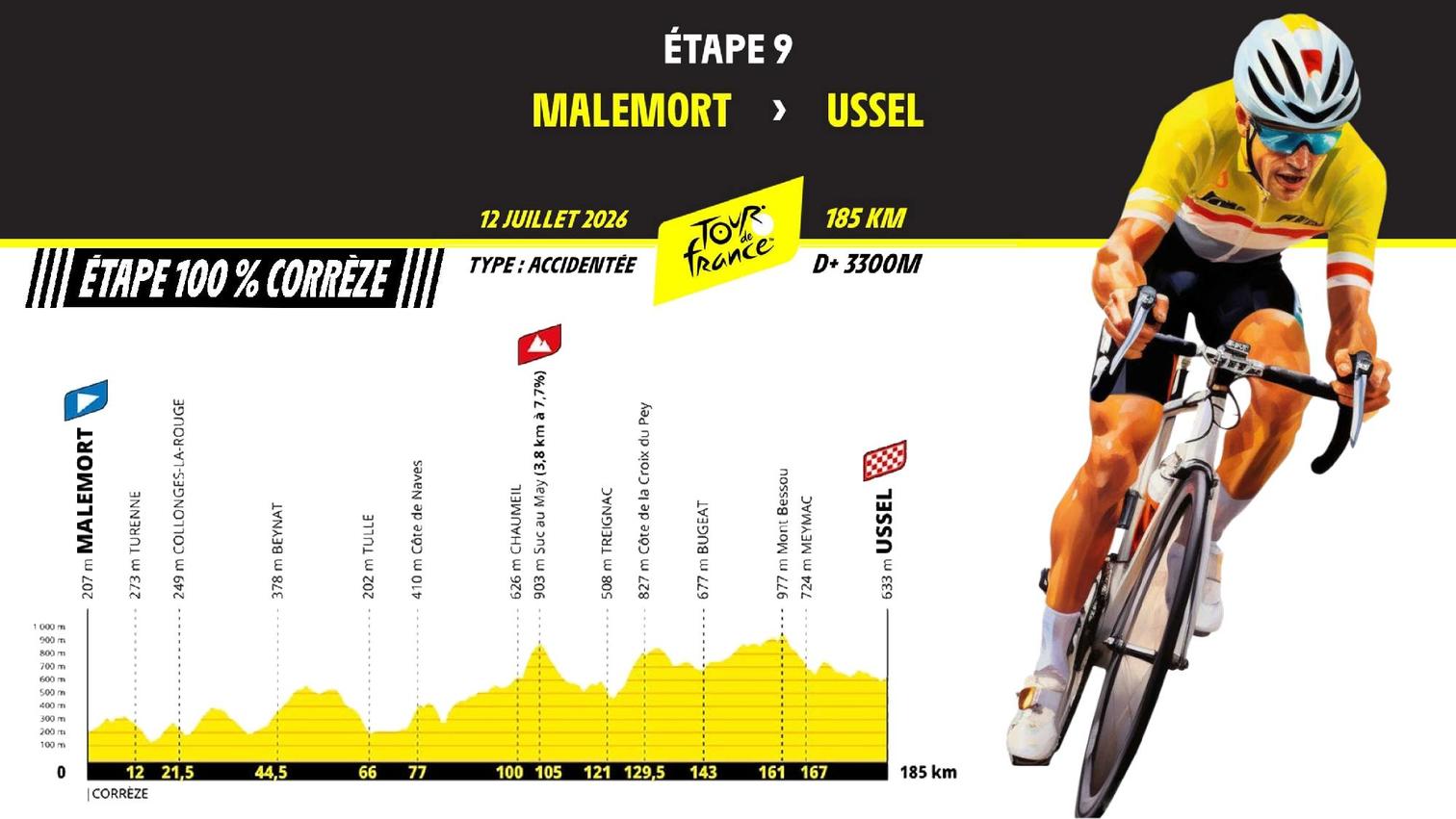 Reliant Malemort et Ussel, l'étape sera longue de 185 km et emmènera les coureurs à sillonner les routes du département, entre nature verdoyante, paysage bucolique, patrimoine exceptionnel et villages de caractère.