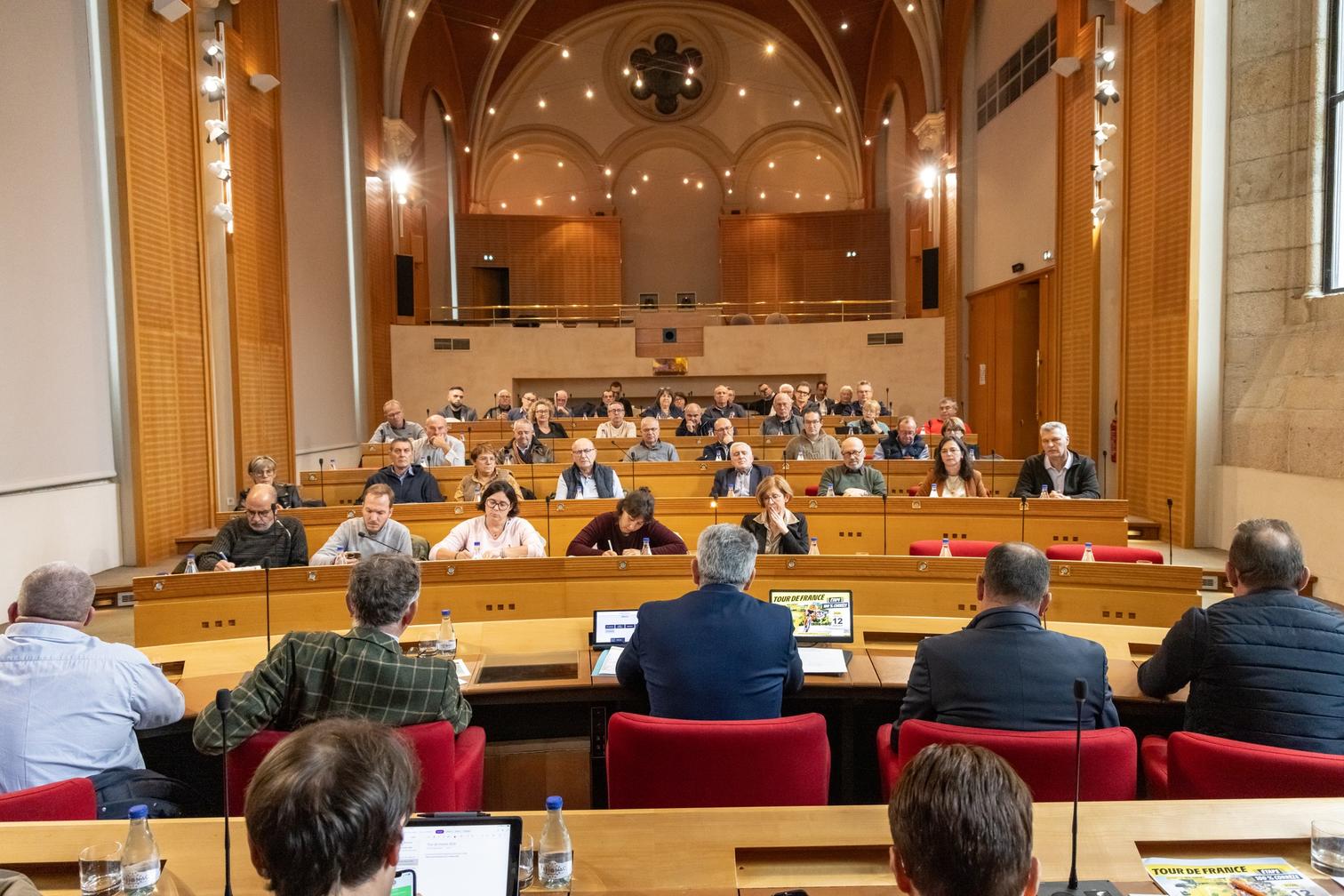 Cet après-midi, Pascal Coste était heureux d'accueillir Stéphane BOURY, Commissaire Général responsable des sites d’arrivée d’étapes chez ASO, pour présenter le parcours aux maires des communes traversées. Une première réunion d'échanges constructifs pour s'assurer du bon déroulement de la course.