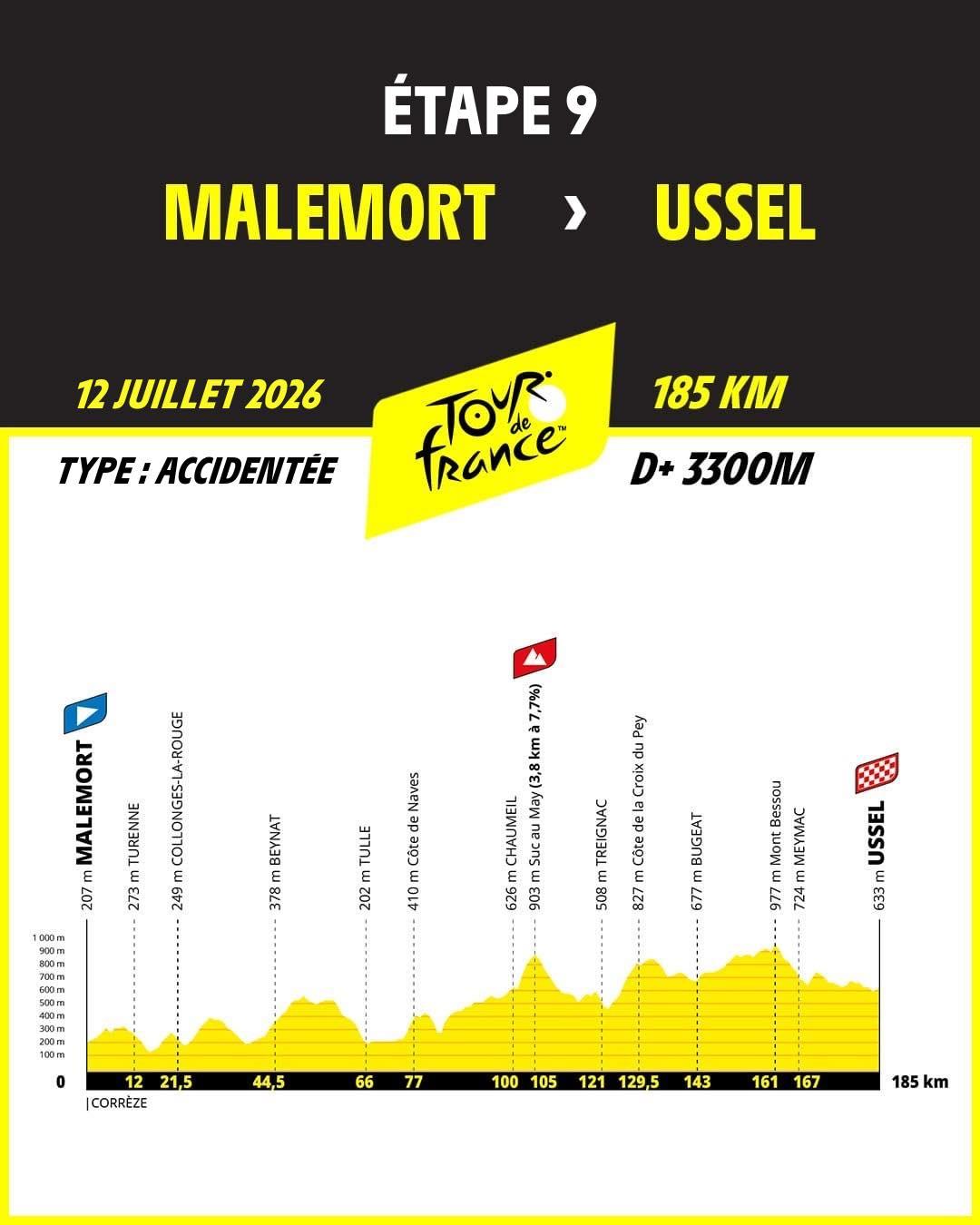Dévoilé par Christian Prudhomme, Directeur de l'épreuve, aux côtés de Pascal COSTE, Christophe Arfeuillère et Laurent Darthou, le parcours de cette 113ème édition fera la part belle au département avec une étape 100% Corrèze le dimanche 12 juillet 2026.
