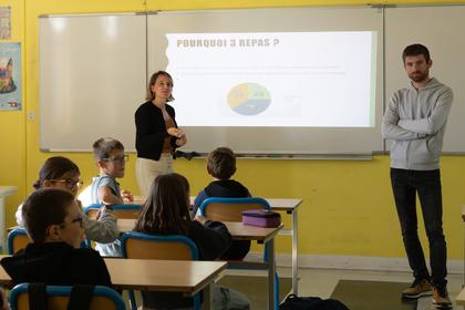 Ce matin, les élèves du Collège René Perrot de Merlines ont participé à un atelier ludique animé par la diététicienne Annabelle Alessio et la cheffe de cuisine du collège en présence de Marilou Padilla-Ratelade, Conseillère départementale du canton.